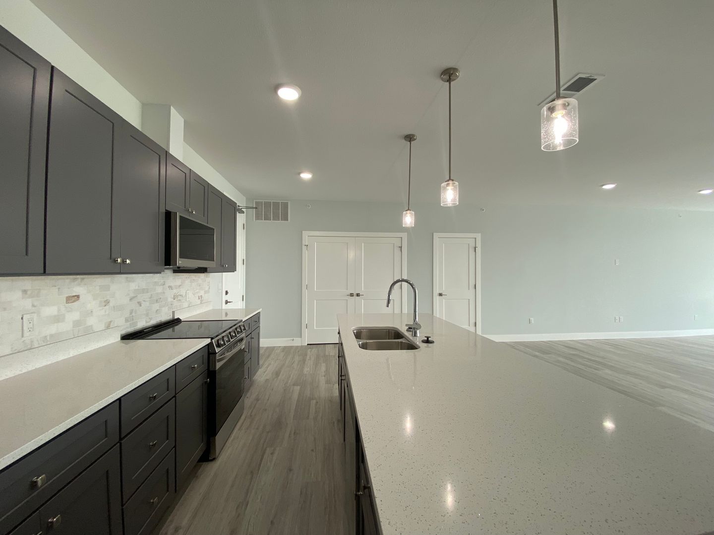 Experience luxury living in the heart of Champaign, IL with our Newer Construction 3 Bedroom Apartment. This spacious abode, boasting over 2000 square feet, offers three bedrooms, each with an ensuite private bathroom, ensuring personal space and comfort for all residents. The apartment features high ceilings, enhancing the sense of space and openness. The kitchen is a chef's dream, equipped with all necessary appliances, all in stainless steel, and a vent on the stove that vents to the outside. The huge kitchen islands provide ample space for meal preparation or entertaining. For your convenience, the apartment includes an in-unit washer and dryer. The secured entry ensures peace of mind, making this downtown location not just desirable, but also safe. Experience the best of Champaign living in this luxurious, modern apartment. Non-Smoking.